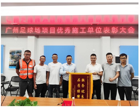 9月3日,廣州恒大集團(tuán)足球場(chǎng)指揮部召開“廣州足球場(chǎng)項(xiàng)目?jī)?yōu)秀施工單位表彰大會(huì)”,中地君豪榮獲業(yè)主方頒發(fā)的“服務(wù)優(yōu)良,品質(zhì)保障”的榮譽(yù)錦旗。獲此殊榮,是對(duì)中地君豪承建世界第一足球場(chǎng)地基基礎(chǔ)施工建設(shè)成果的高度肯定。