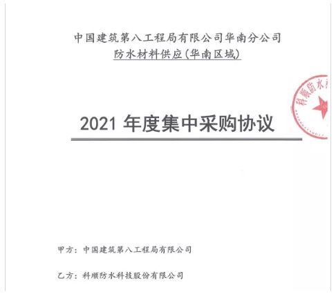 近日,科順股份相繼戰略簽約&中標中建八局華南分公司、西南分公司、南方分公司防水材料供應2021年度集中采購。作為中國最具競爭力的大型綜合投資建設集團,科順股份與中建八局的系列簽約,彰顯了科順股份在建筑防水領域的專業、品質與影響力。