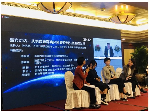 在當天的“從供應鏈環境風險管控到引領低碳生活”圓桌論壇環節,中國房地產綠色供應鏈副組長、朗詩常青藤總經理羅丹受邀出席,為大家分享朗詩如何對供應鏈上游高環境影響供應商進行管控、如何在建造和使用階段推動建筑的低碳綠色理念。