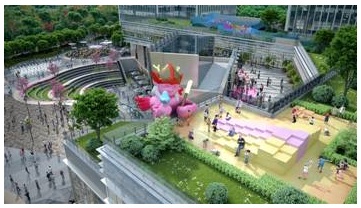 同時,上德中心通過立體多層次的景觀,讓5A寫字樓和藝術商業功能銜接。商業能夠提供休閑娛樂餐飲服務,讓商辦環境和諧統一。在打造辦公地標之同時,也輻射周邊百萬人客群,營造社區商業配套典范。