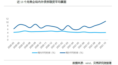 事實上,房企境外債利率已經連續三個月維持大幅增長。貝殼研究院數據顯示,10月房企境外債券利率均值突破10%的高點,達到10.65%,較9月大幅上升157個基點。