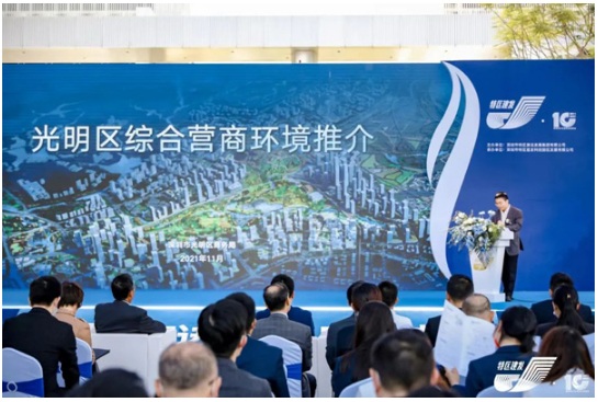 如今的光明正在加速集聚“面向未來”一流事業平臺,成為深圳最具魅力、最富活力、最有潛力的產業熱土,人才沃土。光明區商務局副局長陳日周談到光明的綜合營商環境在不斷提高,并出臺了一系列支持產業發展的政策舉措。“近年來,光明區經濟快速發展,生產總值在2019年底首次邁上千億級臺階,2020年全年增長5.7%,達到1100.77億元,2021年上半年增長20.8%,增速排名全市第一。新一代信息技術、新材料、生物醫藥等戰略性新興產業已成為光明產業發展的主引擎,增加值占GDP比重達45.5%,以華星光電、普聯、邁瑞等為代表的規模以上工業企業、國家高新技術企業雙雙突破千家。特區建發樂府廣場、尚智科園、云智科園三個項目將作為光明區12月招商大會的重點推介項目。”