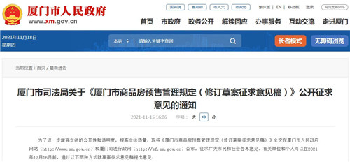 房訊網訊 近日,廈門市人民政府網站發布關于《廈門市商品房預售管理規定(修訂草案征求意見稿)》,其中提出,預售商品房的,預售人和預購人應當在通過登記機構網站房屋網簽備案系統簽訂商品房買賣合同。