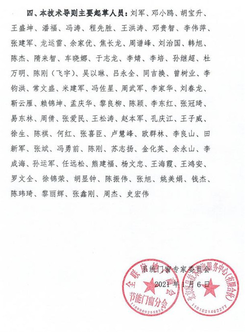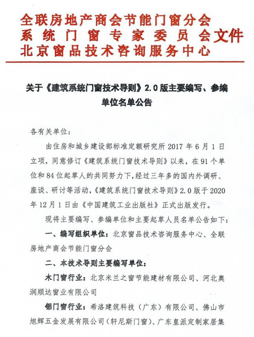 [提要]關于《建筑系統門窗技術導則》2.0版主要編寫、參編單位名單公告