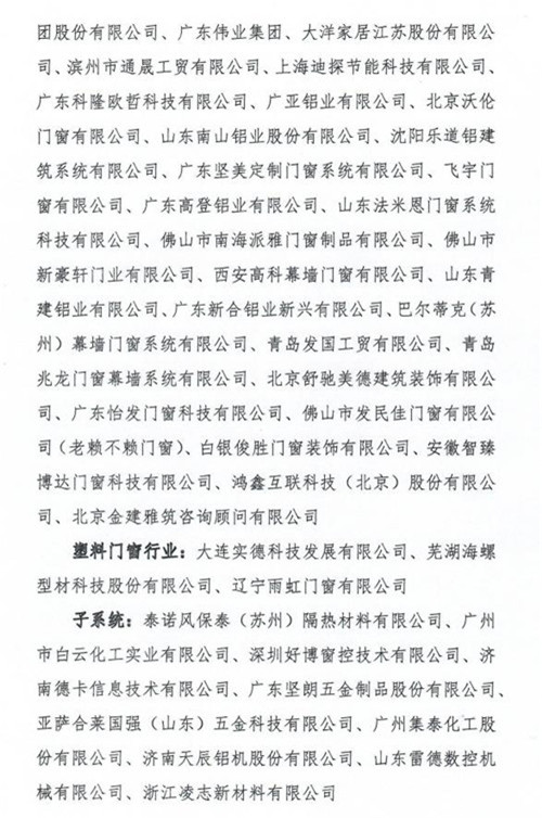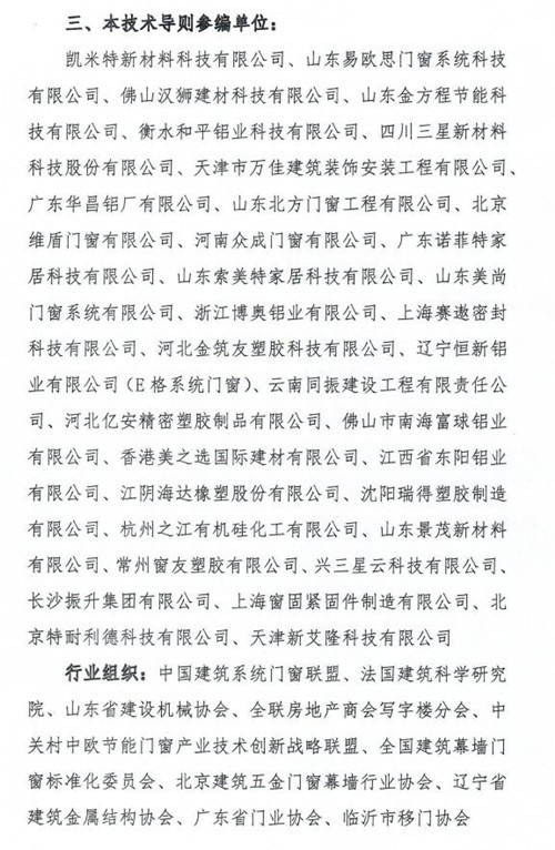 《建筑系統門窗技術導則》2.0版主要編寫、參編單位名單