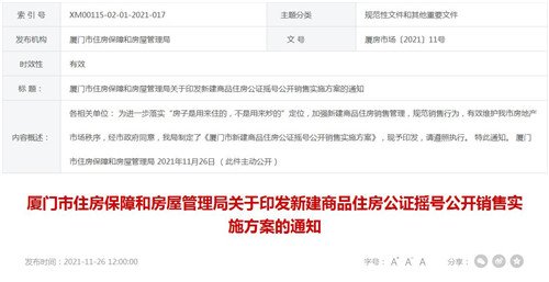 房訊網訊 進一步落實“房子是用來住的,不是用來炒的”定位,加強新建商品住房銷售管理,規范銷售行為,廈門市住房保障和房屋管理局近日印發《廈門市新建商品住房公證搖號公開銷售實施方案》,適用于2021年12月1日后出讓的,思明、湖里區所有的商品住房項目,海滄、集美、同安、翔安區達到地價上限且意向登記購房人數不少于可售房源數的商品住房項目。