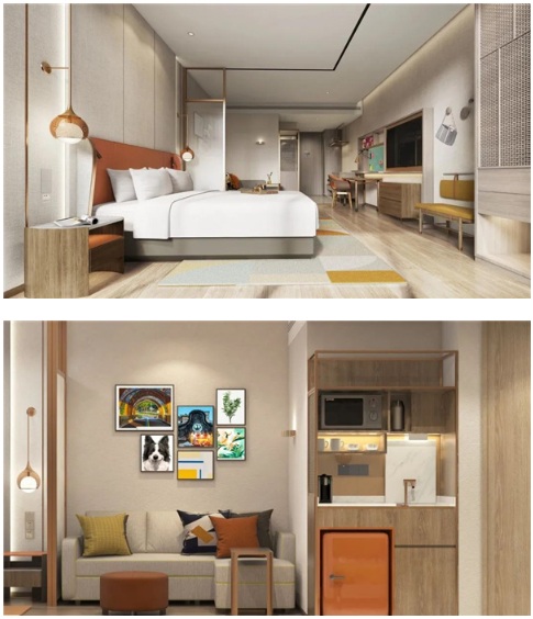 筆者曾探訪過希爾頓惠庭樣板房,沉浸式體驗了這個富有創新精神及現代感的中高端旅居酒店品牌如何在28平方客房設計出“套房”體驗:專屬希爾頓惠庭客房特色配套的生活吧——配置了微波爐、咖啡機、全功能冰箱等更豐富的居家化設備,還有筆者特別喜歡的帶著滑輪可四處游走的工作桌以及組合沙發(拆開就是一張床),只要喜歡,可隨意排列組合;單單是通過布局、色彩搭配、家具材料與選型,就表達出居家化感受、提供舒適自在的居家場景化體驗。想象一下,未來攜三五好友或者一家三口,入住這樣的房間,叫個外賣和朋友一起圍桌打牌,抑或采買當地特色半成熟食品和家人一起微加工感受異地的廚房樂趣……方寸之間盡享旅居新生活,新鮮之中又不失居家的熟悉感與溫馨氛圍。更重要的是,如此豐富又多元的產品,單房投入控制在16-18萬左右。