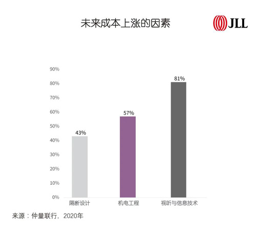 盡管區域內各大市場的裝修成本呈現分化,但總體向上的走勢將在2021年延續。辦公空間將繼續演變。為滿足員工的需求變化并順利過渡至下一個新常態,企業在升級技術、提升員工健康和福祉等方面仍將保持極高的投資積極性。