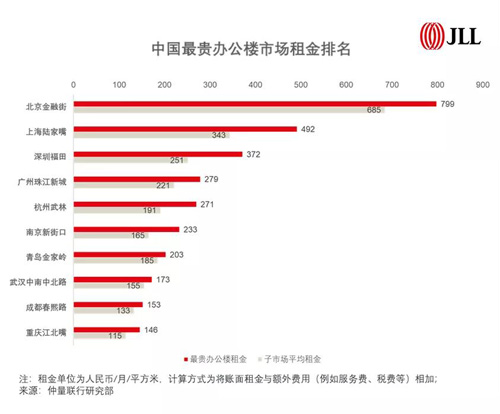 在仲量聯行2020年全球《優質辦公樓租金追蹤指數報告》中,全球最貴辦公樓市場租金也呈現整體下滑趨勢,平均降幅達3.0%,但各地區最貴辦公樓的租金差距有明顯縮小。香港中環地區、北京金融街和北京中央商務區依然位列十大最貴辦公樓市場。