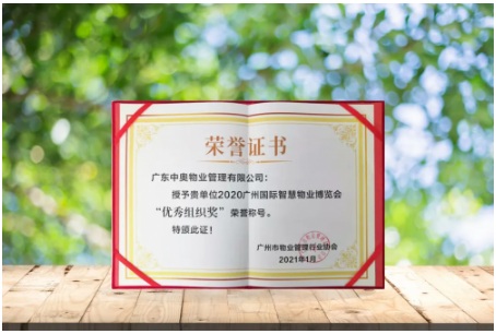 中奧物業(yè)榮獲“廣州國際智慧物業(yè)博覽會(huì)優(yōu)秀組織獎(jiǎng)”