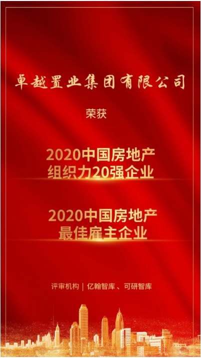 2020年12月29日,在國家會展中心上海洲際酒店在上海隆重舉行召開的“共創組織力——2020年中國房地產業組織管理峰會暨中國房地產企業(首屆)CHO聯席會”上,卓越地產榮獲 “2020中國房地產最佳雇主企業”,成為了眾人眼中的焦點。