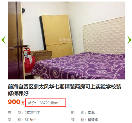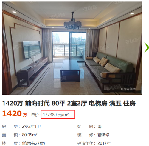 而目前,同樣位于前海片區的前海時代小區,掛牌價高達每平方米17至20萬元之間。