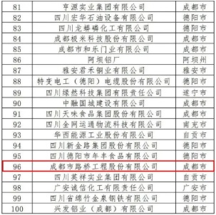 宏義集團憑借穩健的發展態勢和良好的經營業績,連續三年登榜,位居第40位;同時,宏義集團控股上市公司成都市路橋工程股份有限公司也再度入圍四川民營企業100強。