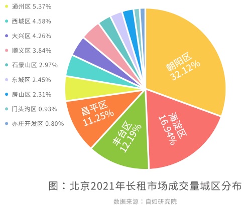 從空間維度來(lái)看,雖然城六區(qū)(東城區(qū)、西城區(qū)、海淀區(qū)、朝陽(yáng)區(qū)、豐臺(tái)區(qū)、石景山區(qū))依舊承接了超7成租賃需求,但是東城、西城兩區(qū)之和僅占7%;而朝陽(yáng)區(qū)作為經(jīng)濟(jì)、人口雙密集城區(qū),承接了全市超3成租賃需求,約為海淀區(qū)的兩倍;周邊區(qū)中,昌平區(qū)占比已超1成、通州區(qū)占比也超5%,北京人口、產(chǎn)業(yè)由內(nèi)向外疏散趨勢(shì)正在逐步凸顯。