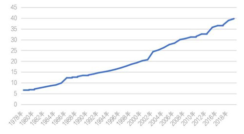 圖:城鎮人均居住建筑面積變化情況(平方米)