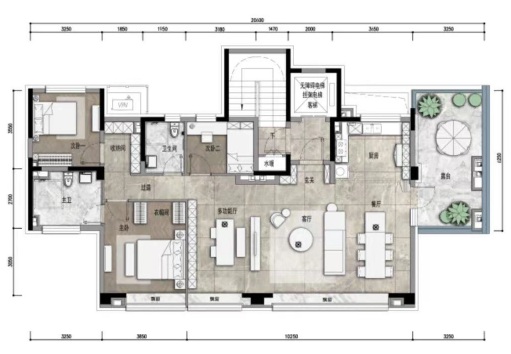 私家電梯入戶,20平米空中露臺,21米的超廣角開間,同面積段,市面上并無可與之相比的產品。