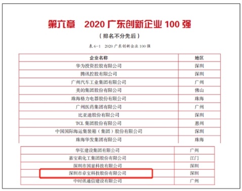 日前,《2020廣東500強企業發展報告》正式出版,報告中發布了多份榜單,卓寶憑借強大的企業實力與技術創新能力上榜“廣東企業500強”、“廣東創新企業100強”。
