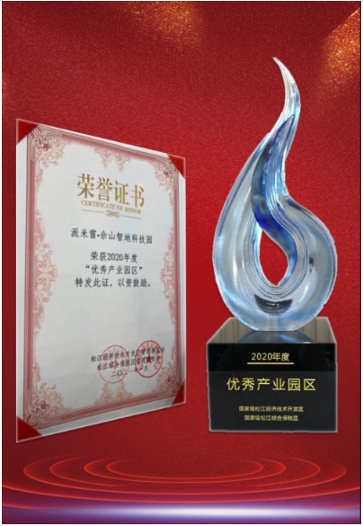 2021年1月18日長三角G60科創走廊高質量發展企業座談會在廣富林國際文化交流中心成功舉行,松江300多家企業參加。派米雷·佘山智地科技園榮獲2020年度“優秀產業園區”稱號。