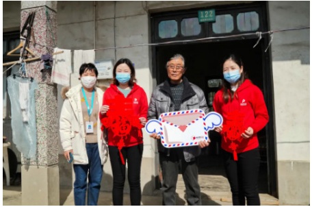 此外,志愿者們還探訪了家住松江區(qū)新橋鎮(zhèn)的低保戶周爺爺家、身患殘疾的荀奶奶家,以及家住奉賢區(qū)陸家橋村的獨居臥病老人黃奶奶家。每到一戶家庭,志愿者們都與他們親切交談,詳細了解他們的身體狀況、家庭情況以及生活狀況等,在送上禮物的同時也為幫困對象帶來上海派米雷公益服務(wù)中心的新春問候。