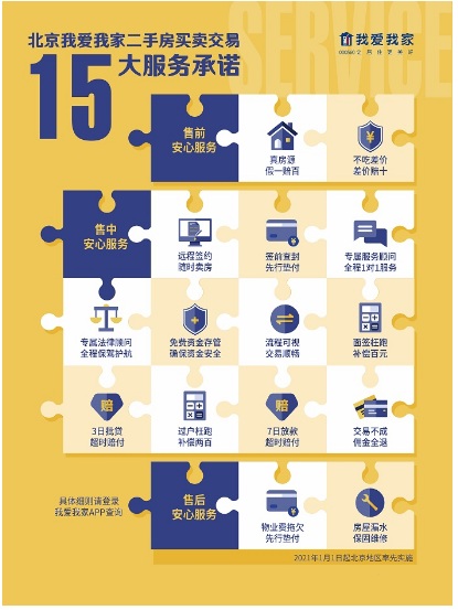 作為有著21年品牌歷史的房地產(chǎn)經(jīng)紀(jì)老牌企業(yè),我愛我家一直致力于守護(hù)交易安全、提升顧客服務(wù)體驗。此次北京我愛我家推出的15項安心服務(wù)承諾,力求在二手房交易的售前、售中、售后全過程中為客戶保駕護(hù)航。
