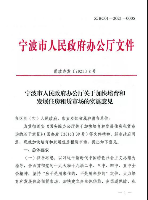 1月27日,《寧波市人民政府辦公廳關于加快培育和發展住房租賃市場的實施意見》(以下簡稱《實施意見》)已經出臺,并于2021年2月23日起施行。