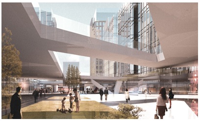 新經濟產業園(環東云谷)以“智慧綠谷,未來創園”為設計理念,根據不同地塊打造了智慧之鏈、辦公之鏈、風尚之鏈、活力之鏈和生態之鏈,通過設置科學的商業空間、辦公空間、中心公園、展示中心、人行漫步系統等智慧開放空間和特色建筑,實現園區與城市生活的無邊界融合。