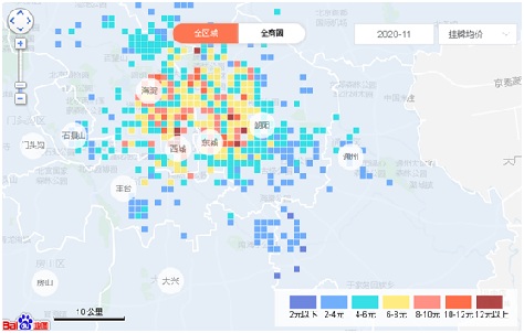 據好租官方數據顯示,當前北京各類商辦樓宇(包含乙級及以下樓宇、產業園)的平均掛牌均價約為7元/㎡/天,最貴的金融街商圈現已反彈至20.9元/㎡/天,其他10元以上的商圈僅剩CBD和東長安街。6-8元的中位數價格段在北京三環以內有著較大范圍的分布,6元以下低價格段幾乎填滿了五環外區域。