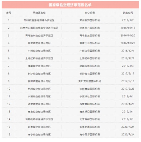 在中國,2015年7月,國家發(fā)展改革委、民航局聯(lián)合發(fā)布《關(guān)于臨空經(jīng)濟示范區(qū)建設(shè)發(fā)展的指導(dǎo)意見》,將臨空經(jīng)濟區(qū)提升到一個前所未有的歷史高點。目前,我國已先后批復(fù)北京、鄭州、青島、重慶、上海、廣州、成都等多個臨空經(jīng)濟示范區(qū)。