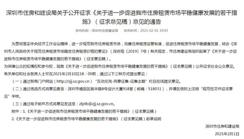據(jù)“深圳發(fā)布”微信號消息,為進一步規(guī)范住房租賃市場行為,深圳市住建局2月1日發(fā)布《關于進一步促進我市住房租賃市場平穩(wěn)健康發(fā)展的若干措施》(征求意見稿)(簡稱《若干措施》)。《若干措施》提到,深圳將大力推進公共服務均等化,逐步推進租房積分入戶政策與購房享受同等待遇,優(yōu)化租房積分入學政策。