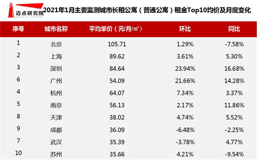 在1月邁點研究院發布的“2021年1月長租公寓品牌影響力榜單”中,集中式長租公寓品牌前十為:冠寓、泊寓、魔方公寓、窩趣輕社區、樂乎公寓、萬豪行政公寓、世聯紅璞、自如寓、新派公寓、和柚米寓;分散式長租公寓品牌排名前十為:青客、相寓、自如租房、美麗屋、建方長租、優客逸家、魔飛公寓、棉花公寓、匠寓和水滴公寓;其中匠寓上月份媒體指數環比上升較大。