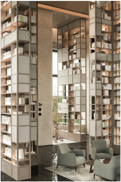 生活美學館:云端之上,是書香院處,云端之下,是生活與藝術糅合的集展示、洽談、辦公、活動等為一體的多功能場景,傳遞品牌對理想中的明日生活圖景的煥新態度。