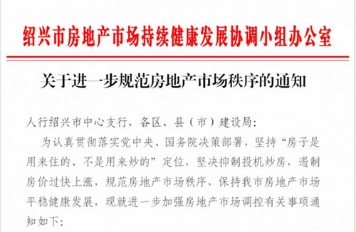 紹興市房地產市場平穩健康發展領導小組辦公室