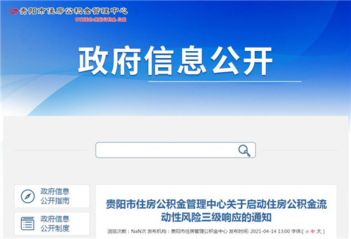 貴陽市住房公積金管理中心關于啟動住房公積金流動性風險三級響應的通知