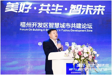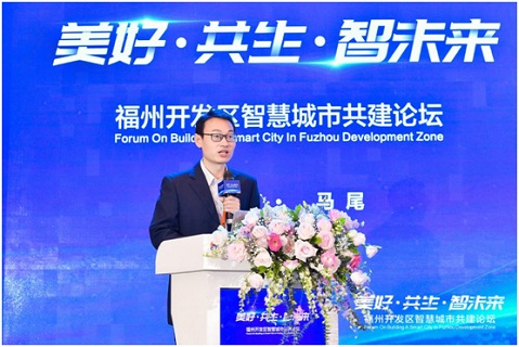 福州市馬尾區政府副區長徐國珍為大會做致辭發言,他回顧了福州開發區的發展歷程,以及馬尾區近年來不斷發力智慧城市、城市大腦的建設所取得的成就,并希望同與會代表和各位專家一起,以本次論壇為橋梁紐帶,共建、共享、共贏,開創智慧城市發展的美好未來。