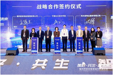 此外,本次論壇還帶來一批優質項目集中簽約。陽光城物業服務有限公司與福建星網天合智能科技有限公司、福州航旅酒店管理有限公司、寧德北大培文學校等達成戰略合作簽約,共同在智慧社區、智慧校園、智慧城市運營管理等諸多領域展開全面合作。