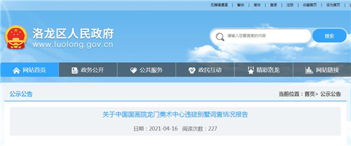 房訊網訊 4月16日,河南省洛陽市洛龍區政府官網公布《關于中國國畫院龍門美術中心違建別墅調查情況報告》稱,中國國畫院龍門美術中心建設的10棟20套藝術家公寓,被認定為違建別墅,被當地政府予以沒收。