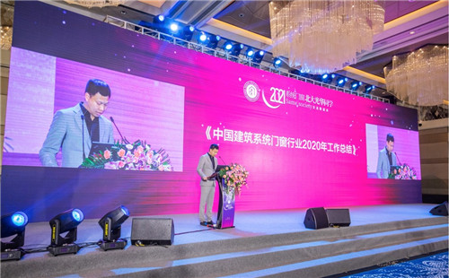 接著,中國建筑系統門窗聯盟常務副理事長、全聯房地產商會節能門窗分會和系統門窗北大光華同學交流聯誼會常務副會長、佛山市英輝鋁型材有限公司總經理、希洛建筑科技有限公司董事長譚永漢做《中國建筑系統門窗行業2020年工作總結》。