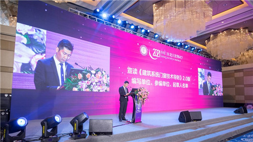 系統門窗專家委員會副主任、廣東皇派定制家居集團股份有限公司總工程師周譜峰宣讀了《建筑系統門窗技術導則》2.0版編寫單位、參編單位、起草人名單,共有91家單位、84位行業專家參加的編寫工作。