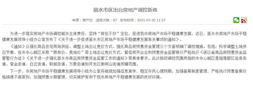 4月1日,浙江省麗水市住房和城鄉建設局發布《關于進一步促進麗水市區房地產市場平穩健康發展有關事項的通知》(以下簡稱《通知》),進行房地產調控。