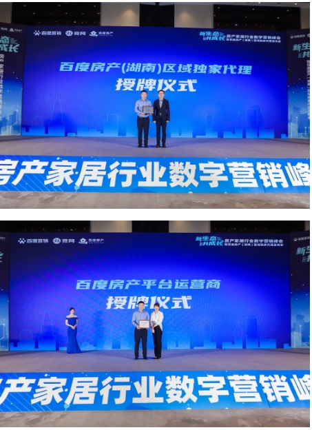 會上,百度正式授權競網集團為百度房產湖南地區獨家代理商及百度房產平臺運營商,并頒發授權證書,F場百余位企業家共同見證百度房產湖南站正式啟動,這是百度房產在湖南譜寫全新篇章的開端,未來百度房產湖南站將依托百度技術力量、優質資源和競網集團在本土的服務經驗,為湖湘房產家居企業提供更加多元化的營銷服務矩陣,為行業創新發展創造更多可能性。