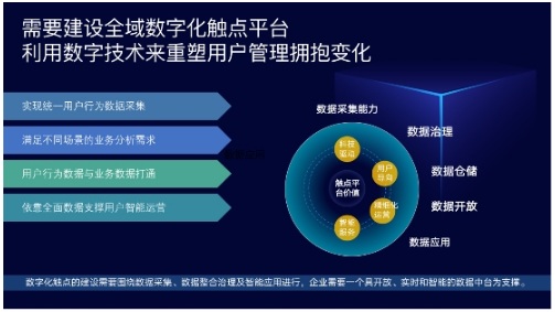 企業(yè)實(shí)現(xiàn)全域觸點(diǎn)數(shù)字化,是要建設(shè)企業(yè)與客戶的數(shù)據(jù)鏈接、獲取能力,通過數(shù)據(jù)感知市場、客戶需求的變化,高效的決策,滿足用戶需求。但是很多地產(chǎn)企業(yè)對客戶觸點(diǎn)數(shù)據(jù)沒有實(shí)現(xiàn)全面的采集,沿用傳統(tǒng)的方式去獲取數(shù)據(jù),在用戶需求的變化時(shí),因缺乏數(shù)據(jù)洞察導(dǎo)致需求滿足響應(yīng)速度慢,失去競爭優(yōu)勢。