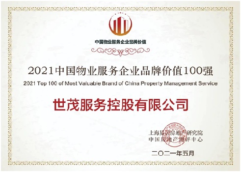 (世茂服務榮獲“2021中國物業服務企業品牌價值TOP7”)