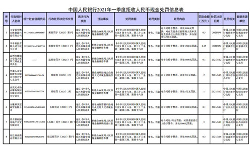 房訊網訊 5月10日,央行發布2021年一季度拒收人民幣現金處罰情況,8家拒收現金的單位及相關責任人被經濟處罰,包括公共服務機構、停車場、游樂場、保險公司及房地產公司等。其中,昌吉碧桂園房地產開發有限公司因拒絕公眾使用人民幣現金繳納購房首付款,被處以5萬元罰款,對其直接責任人予以警告,并處1000元罰款。