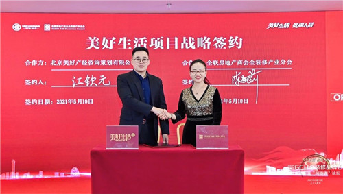 全裝修品牌的建設離不開行業(yè)內(nèi)領袖的帶領和助力,活動現(xiàn)場舉行了"全裝修美好生活戰(zhàn)略簽約儀式"。中國產(chǎn)業(yè)經(jīng)濟信息網(wǎng)"美好生活項目"組委會執(zhí)行秘書長江欽元先生與全聯(lián)房地產(chǎn)商會全裝修產(chǎn)業(yè)分會陳忠莉女士簽訂全裝修美好生活戰(zhàn)略文件。