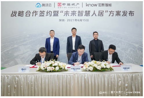 6月15日,北京如影智能科技有限公司(以下簡稱“如影智能”)與騰訊云計算(北京)有限責任公司(以下簡稱“騰訊云”)與中海企業發展集團有限公司(以下簡稱“中海地產”),在深圳共同簽署三方戰略合作協議,同時發布了未來智慧人居聯合解決方案,并宣布成立未來智慧人居聯合實驗室。