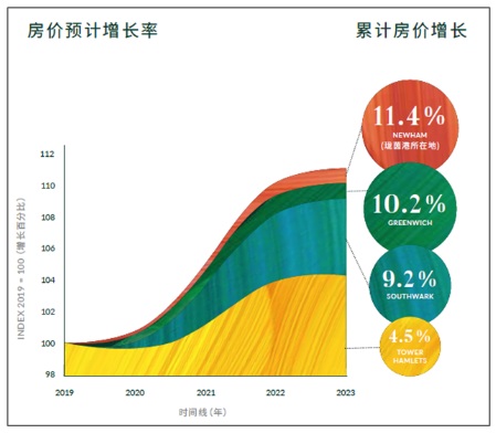不僅如此,蒙特安維以獨(dú)到的投資眼光,精準(zhǔn)布局新興熱度區(qū)域。目前在售的優(yōu)質(zhì)樓盤——瓏茵港(Royal Eden Docks),位于倫敦東部潛力燙金C位地段皇家碼頭(Royal Docks),坐享倫敦“經(jīng)濟(jì)引擎”伊麗莎白線(Elizabeth line)紅利。數(shù)據(jù)顯示,瓏茵港所處區(qū)域的房?jī)r(jià)增速未來(lái)將超過(guò)倫敦其他大部分地區(qū),為業(yè)主創(chuàng)造不菲的投資收益。