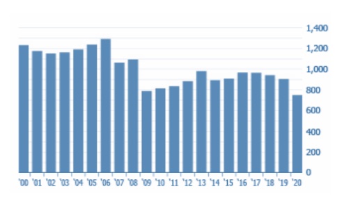 2020年日本公寓均價約為5132萬日元(約折合人民幣323萬元),其中,以東京為首的首都圈公寓均價約為6084萬日元(約折合人民幣383萬元),較2019年增長1.7%,均價連續兩年上漲,是1991年以來的最高值。以大阪為首的近畿圈公寓均價約為4181萬日元(約折合人民幣263萬元),漲幅約8.1%,連續3年呈增長趨勢。