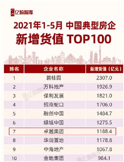 2021年以來,卓越集團累計新增土儲29幅。億翰智庫數據顯示,1-5月卓越集團新增貨值1188.4億,位列典型房企第七位,拿地能力穩居一線房企之列。而掌握充足現金流的卓越集團并未停下擴張的步伐。在北京5月舉行的集中土拍中,卓越集團連續收獲四個優質項目,在京形成了六子格局,并在成都、南京等核心城市連續獲取優質地塊,持續推進集團“1+1+X”戰略布局。