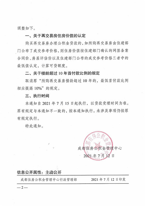 同時,對于購買再交易房辦理公積金貸款的,如所購再交易房由住建部門公布了成交參考價格,則住房價值按住建部門確認的網簽備案合同價、房屋評估價以及住建部門公布的成交參考價格三者中的最低值認定,計算可貸額度。該政策自2021年7月15日起執行,以貸款受理時間為準。