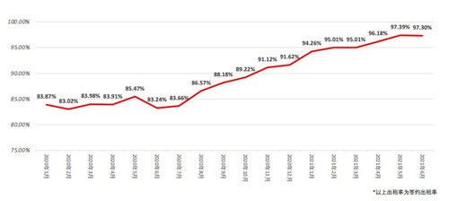 2020年1月~2021年6月木棉(北京)出租率變化曲線